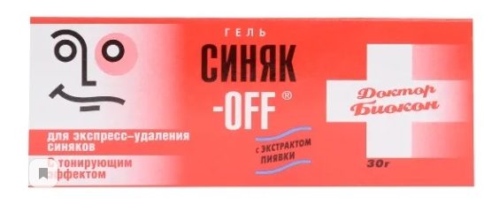 The gel for express-removal of bruises is presented by the Biocon brand. Released over the counter. The drug is applied to the affected area 2-3 times a day. You don't need to wash it off. It is not recommended to go outside for 2 hours after applying the cream. Promotes rapid "fading" of the bruise. Eliminates pain and burning. Absorbs bruises due to the effect of lymphatic drainage. Relieves swelling and swelling of damaged tissues. Helps fight postoperative puffiness and spots on the body and face. Relieves inflammation.