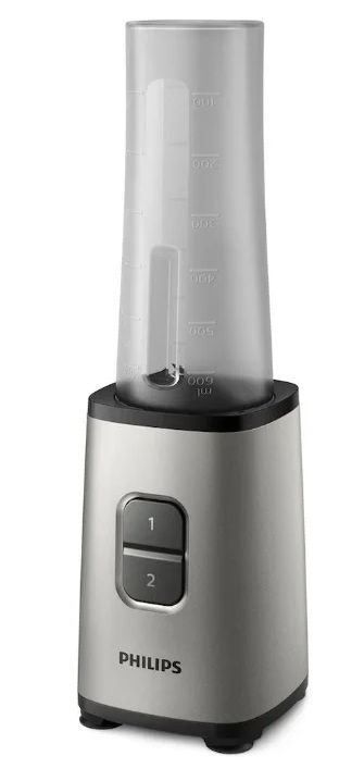 The device has a 500 W electric motor. For a bowl with a capacity of 600 g, this is quite enough. This model has a durable body and is easy to clean. The set with the product includes a user manual written in understandable language, as well as 2 cups, 600 ml, which have caps with valves. All parts of the unit are simple and reliable, so there should be no problems with operation. Unfortunately, the blender has only 1 speed, but this does not affect the final quality of the product.