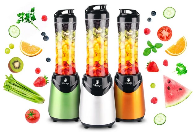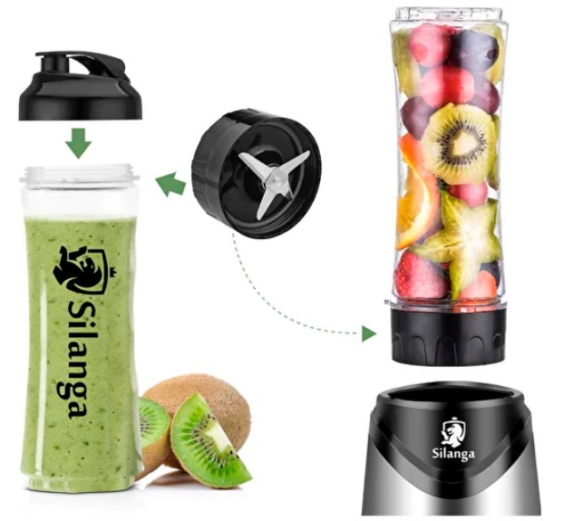 Blender Silanga BL550, with its compact size, has excellent functionality. This is the perfect smoothie and puree blender with a 300W motor and a removable shaker with a special drinking lid that will not spill. The detachable four-blade aircraft steel blade unit rotates at up to 24,000 rpm and chops all products very well. You can make your favorite smoothie or cocktail and immediately take it with you, for example, to work, fitness, walk, trip, etc. The 550 ml bowl is made of high quality safe and eco-friendly food grade plastic that does not emit dangerous Bisphenol A.