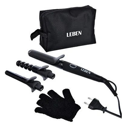 It costs 2790 rubles. The device has an auto-shutdown function after half an hour, heats up quickly. Ceramic surface. Heats up to 210 degrees, three temperature modes: 160, 180, 210. Weighs 600 grams. Nozzles: for curls, 19 mm; cone 13-25; for different sizes of curls, in the form of balls "bubble"; for straightening.