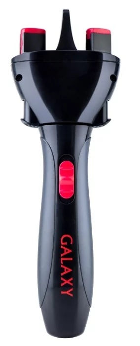 It costs 800 rubles. The design is designed so that you can straighten and curl with one device. Excellent gliding tourmaline ceramic coating. Temperature from 190 degrees, diameter 26 mm, power 35 W. Suitable for damp hair.