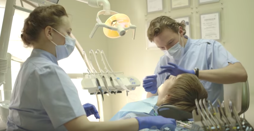 By the device of the dentist element: