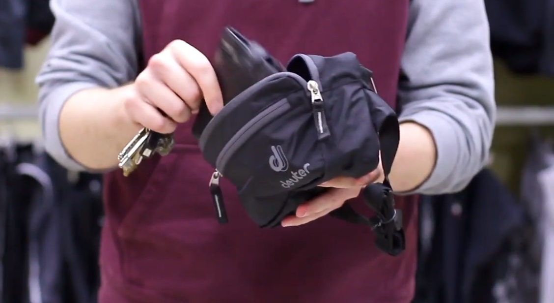 The bag is fastened with an adjustable strap. A large plastic carabiner securely fixes the object on the torso, easily opens by pressing on the ribs of the fastener. A small pocket will fit the required minimum of things - keys, a plastic card. The average price is 1390 rubles.