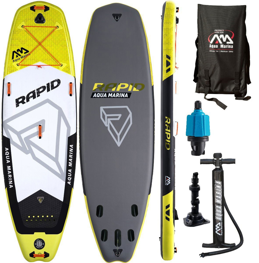 The Rapid 9'6 is a Chinese-made short stand-up board with good maneuverability and high performance. The model exhibits good stability and a solid construction, making it suitable for long-distance rafting, surfing on high waves or mountain rivers. The body is wide, optimized. The Rapid 9'6 has four side fins and one center fins. The surface is covered with a diamond-structured mat to provide the surfer with reliable stability. The model is also additionally equipped with integrated carrying handles. In the bow there is a luggage net. The length is 289 cm, the volume is 289 liters. The weight is relatively low (only 10 kg). The maximum rider weight is 110 kg. The average cost of a model is 27,000 rubles.