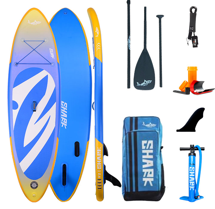 The products of this Chinese brand have an optimal combination of price and quality. The company's products have good adhesion, increased rigidity, high carrying capacity, as well as a catchy attractive design. The range of the company includes boards for beginners, experienced surfers, as well as models for various types of water walks and sports. Shark Sups products are reliable, durable and practical. The 9'2 ALL ROUND SURF is designed for wave surfing. She has a moderate size, a thin body (10 cm) and a tapered tail - these characteristics allow the SUP board to easily maneuver on the waves. The model is suitable for children as well as light riders (7.05 kg) who can use the board for walking in calm water. The kit includes a pump, paddle (carbon-nylon), bag on wheels, leash and repair kit. The maximum weight of the rider is 80 kg, length - 280 cm, displacement - 167 liters. The average cost of a model is 55 800 rubles.
