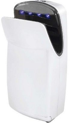 High speed dryers are divided into two types: Turbo and Jet. In the first case, a strong air flow blows off the water from the hands brought from below. In models of the second type, the palms are immersed from above, and the water is blown into a special drip tray. Therefore, the disadvantages of high-speed Jet devices are their large size and the need for periodic cleaning of the drip tray.