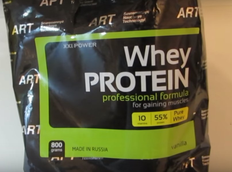 Whey protein of the domestic manufacturer Pure Protein is a concentrate and consists of 80% protein. It contains wheat germ, fructose and a sweetener - sucralose. The nutritional value of one serving is 129 kcal, with protein - 21 g, and fats and carbohydrates - 2.6 g and 3 g. One serving is 30 grams, a pack is enough for 76 meals. It is advisable to take 2-3 times a day, between meals or with reference to training.
