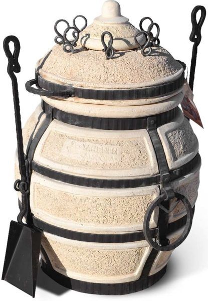 In 4th place - tandoor 84 cm high, 53 cm wide, has a small weight - only 30 kg. The product is made of metal; food is cooked in it twice as fast as on an open fire. The unique design heats up quickly using charcoal. It is loaded through a flap on the side, set on fire and waiting for the wood to burn to coal, warming up the walls. Modern technologies have changed the appearance, but left the principle of the tandoor. The taste and healthiness of dishes cooked in pilav - tandoor are not inferior to ceramic stoves.