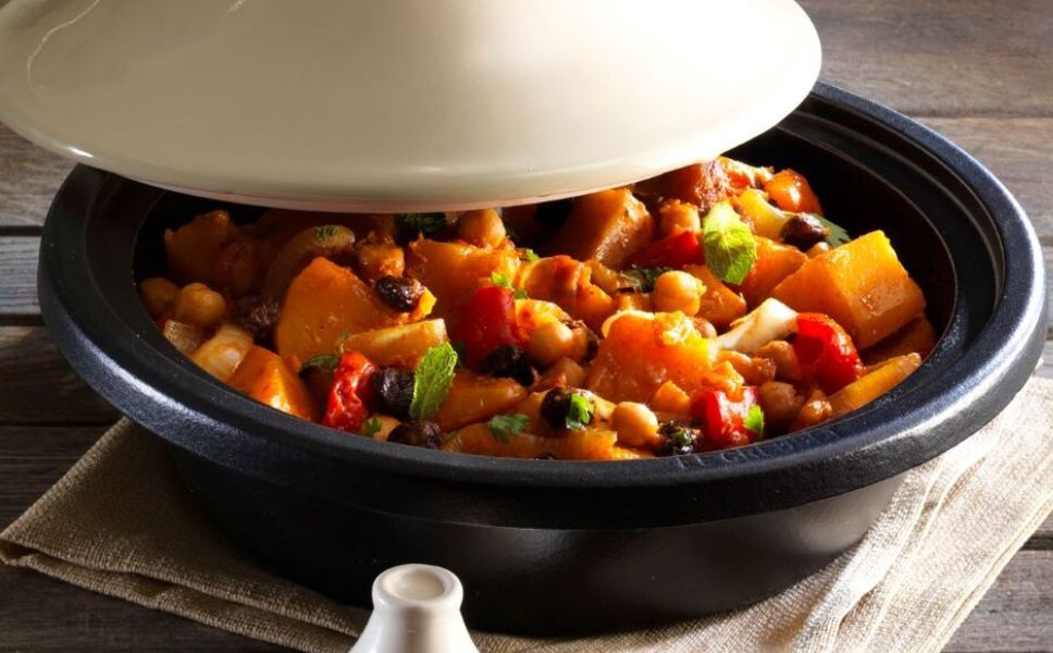 The versatile tajin makes lamb juicy and soft when stewed all day long. Fish and chicken dishes take several hours.