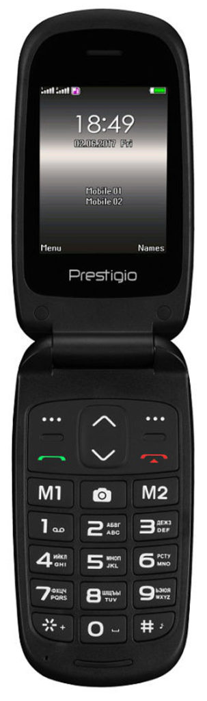 A feature of the model is the equipment of an external display with a diagonal of 1.77 inches and a resolution of 160 * 128 pixels. In standby mode, it displays the signal reception of each of the two SIM cards, battery charge, date, time, active alarm icon. Also, without opening the cover, you can get information about who called (and, accordingly, you can not answer unwanted incoming). The diagonal of the internal main screen is 2.8 ″, the resolution is 320 * 240 pixels. Equipped with 2 slots for SIM cards and 1 slot for a memory card. Internet access is not provided. The battery life is excellent: the battery capacity is 1100 mAh.