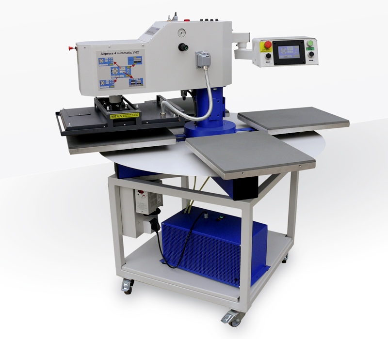 Horizontal rotary model from a well-known manufacturer. It should be noted the coefficient of the working surface (the size of the picture on the product) - 380x450 mm. The temperature is regulated in the range of 0 ° -220 ° C. The power indicator reaches 2000 watts. The dimensions of the device are 80x95x155 cm. The timer is set in the range of 1-5999 seconds. The weight of the professional design is 205 kg, so the product does not differ in mobility. The element heats up to 180 ° C in 10 minutes. An innovative automatic press equipped with a bed and a swiveling heating plate. There are two working surfaces. The only thing that is required of a person is to place the product on the table.