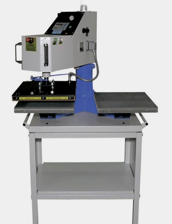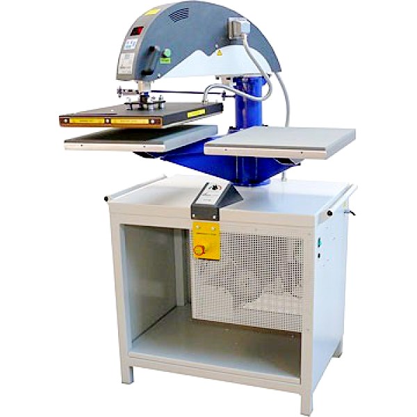 Flat professional press designed to apply images of any complexity to the selected product. The way of lifting and opening is swivel-horizontal. Working surface dimensions 400x500 mm. Temperature range - 0 ° -220 ° С. The power indicator is 2400 W, which should be considered when choosing equipment. The dimensions of the press are 167x74x98 cm with a weight of 175 kg. In 12 minutes, the surface will warm up to 180 ° C. There are two working surfaces, which will significantly reduce the time allotted for printing. With proper use and timely correction of pressure indicators, the device will work for a long time and reliably.