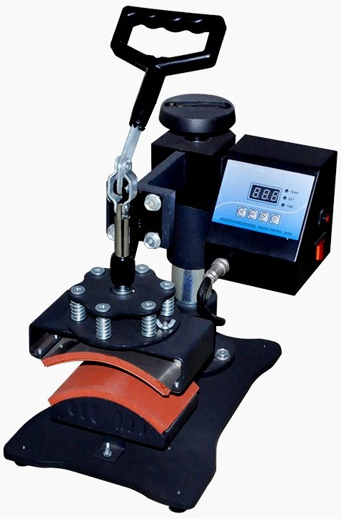 | For caps | The devices are equipped with a lower convex and upper concave plate, which has a cylindrical shape. Thus, the print can be easily transferred to uneven fabric, which is extremely convenient for printing on caps or hats. |