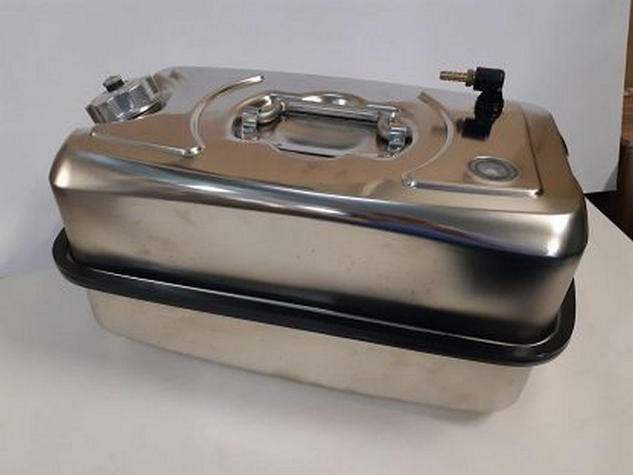 This is a good model for small cars. Due to its compactness, it can be placed in any part of the car. The tank body is made of stainless steel and has a herringbone lid. The connecting seams are protected with rubber pads.