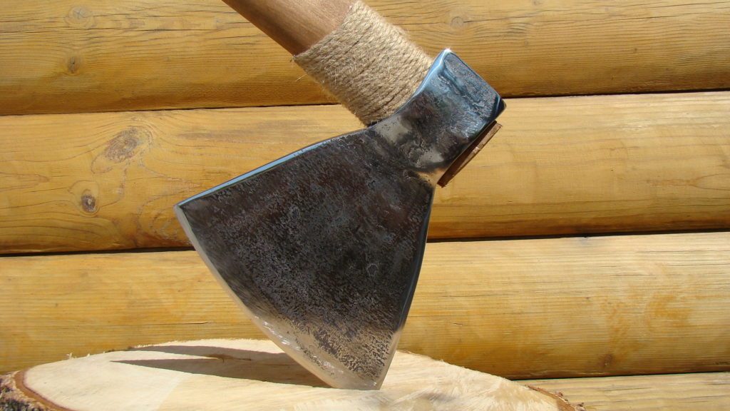 Sharpening the edge of the working surface should be two-sided. In the process of using such an ax, certain difficulties arise. The basic rule is that the sharpening angle should be 35-40˚. Then the cleaver will stick extremely deeply into the carcass, it will cope with both bone and muscle tissue.