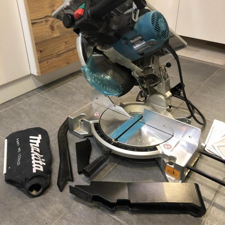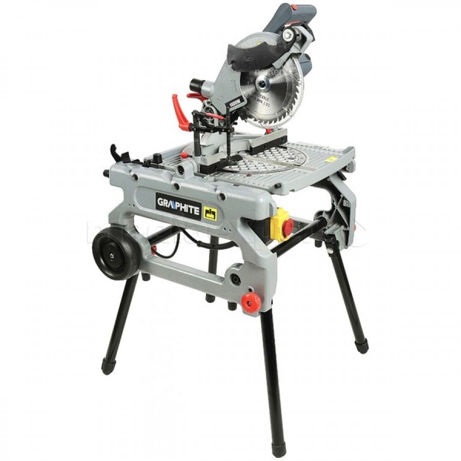This instrument is manufactured in China under the license of a Polish company and is almost a universal instrument. The model provides for the use of various additional components necessary for the convenience of work, such as: a dust collector, additional legs for stable fastening, elbows and pushers, a hex key for unlocking the grooves for changing the saw blade.