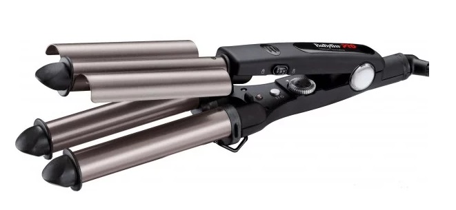 The triple tongs, or as they are also called, the trident, are a tool that creates wavy curls. This curling iron has three heating elements, thanks to this design, light curls are created. Heating elements are of different diameters, small or large curls will depend on this. Also, each of the models has a temperature controller to select a specific mode depending on the hair structure.