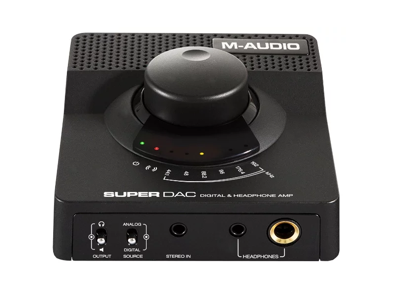 A compact model for advanced users from the American company M-Audio. The converter is compact and does not take up much space. The top panel houses the volume control and LED indicators that display the operating mode and the current sampling rate. Thanks to multiple inputs and outputs, the device can work with multiple devices at the same time. The selection of the device for playback is carried out using a special switch. The Super DAC features two headphone jacks - a 3.5mm mini jack and a gold-plated 6.3mm full-size jack. The converter can be powered via a USB cable when connected to a computer.