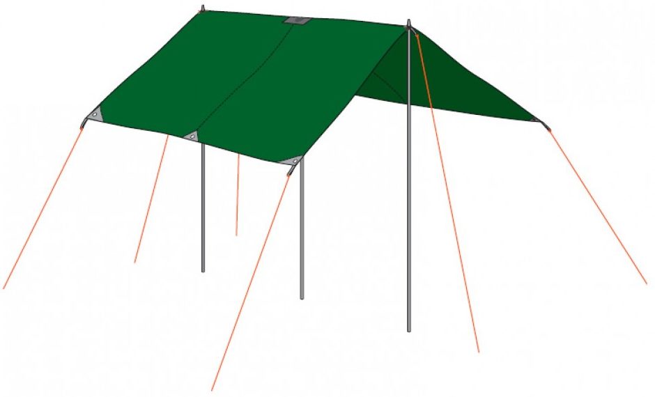 The awning stands out among others for its affordable cost. However, this point is rather controversial, because the low price is due to the lack of racks. So, the installation of the structure is carried out using trekking poles, and stretching is carried out between trees or other supports. The model will protect you from rain and wind, will become indispensable on the beach under the scorching sun.