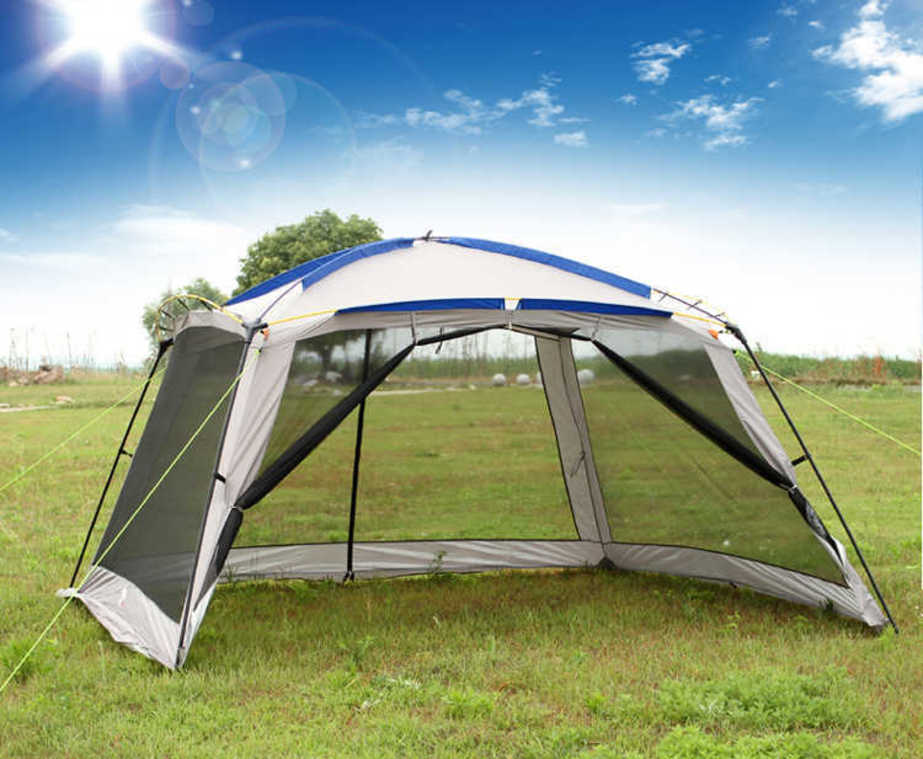 The tent has a square shape and convenient dimensions, which makes it possible to comfortably accommodate a small company. It will fit about 6 people inside. Installation takes less than a minute. In the summer season, the structure can completely replace the tent, only it will be much larger. However, this venture will require an additional purchase in the form of a floor.