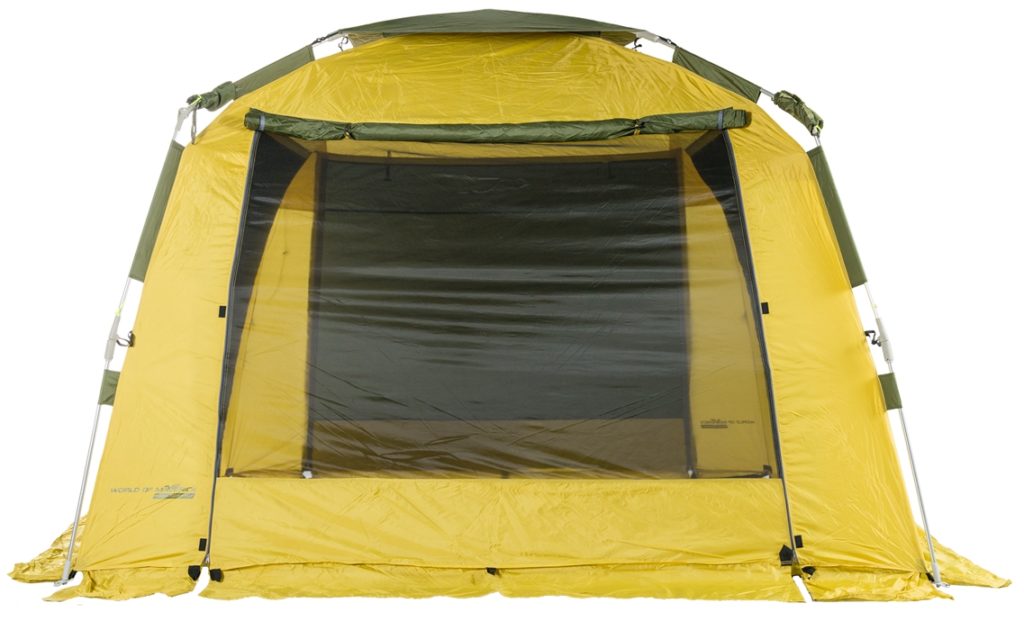 The awning is a versatile single layer and is able to fit a large group of people underneath. Material - 100% polyester. It has excellent water resistance, which allows it to provide reliable protection against external influences. A protective skirt is attached to the lower part of the tent to prevent water infiltration, which significantly increases the comfort during operation.