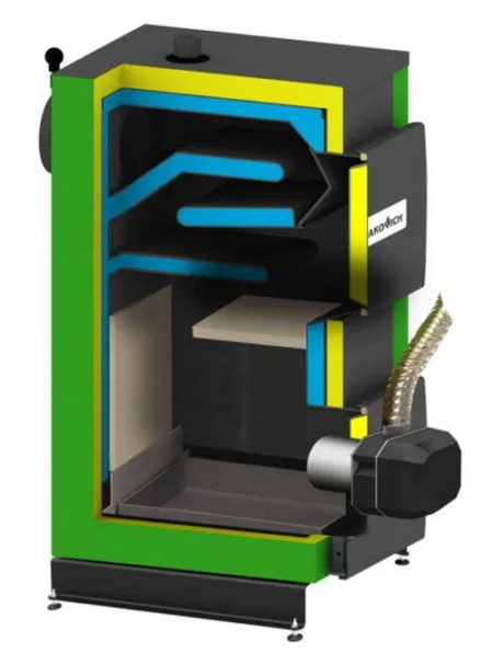Modern equipment with automatic feeding of granular fuel in the form of pellets. It is characterized by compactness, high efficiency up to 86%, and low ash content.