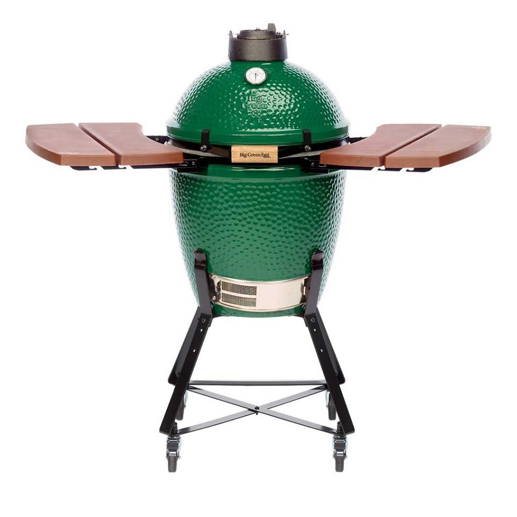 The device is one of the most popular among users. The product looks like a large green egg. The model is made of steel and covered with a ceramic layer. It has great functionality, can be used as a barbecue, grill or smokehouse. The product is installed on the floor, but if necessary, you can use a table.