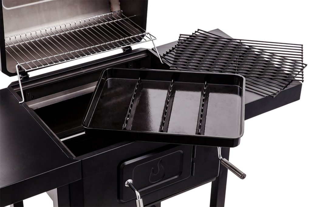 Depending on the type of food on the wire rack, you can adjust the temperature. For this, the device provides a function of moving the hopper with coal to the required height.