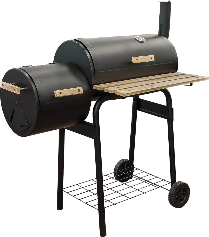 Quite good quality, will be an indispensable assistant for a small yard. Special movable stands allow you to move the grill to any convenient place. The case is of high quality, made of thick metal. The top is covered with enamel, which increases its wear resistance. Comfort is additionally provided by comfortable handles, which do not heat up even after prolonged use. A special ventilation flap allows you to select the required temperature. The set includes a thermometer, with which you can determine the required temperature.