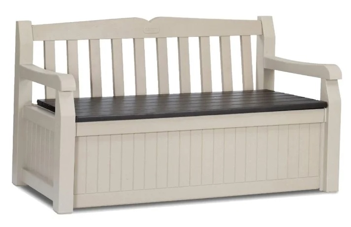 This model from an Israeli manufacturer is a sofa chest for a garden plot. So you can combine rest and storage in one place. You don't have to worry about the safety of things, although this space is ventilated, but water will not penetrate there.In addition, the chest can be locked and the unwanted guest will not take anything with him without your knowledge.