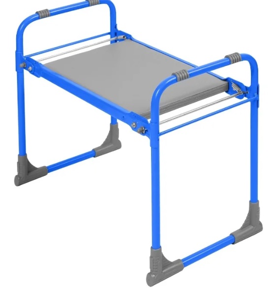 This model has a metal frame with plastic inserts, and the seat is made of chipboard, has a foam layer and is covered with vinyl leather. A feature of this model is the ability to turn it over and use it as a support for gardening.For example, this feature will lighten the load when weeding beds. In addition, due to the folding design, the product does not take up much space during storage and transportation. Also, if we talk about moving the bench by hand, it will also not be difficult. The frame of the product is made in such a way that you can take it at either end.