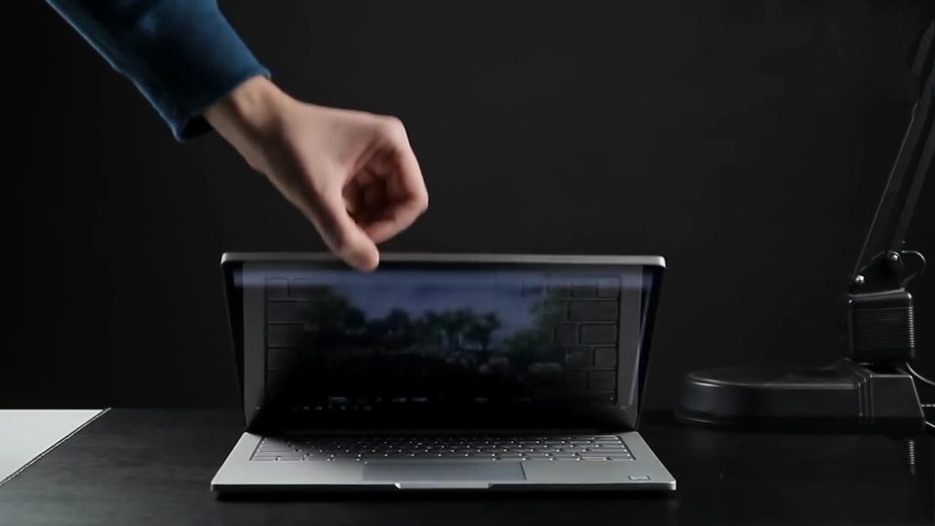 80.7% of the total surface area of the laptop is allocated to the screen. The 13.3 ″ widescreen touchscreen display has a resolution of 3840x2160.