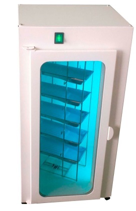 The ultraviolet chamber prevents secondary contamination of devices by microorganisms. The structure consists of supports, a glass door that does not allow UV rays to pass through, controls, devices for storing the contents of the box and a germicidal lamp, which has a long service life and instant ability to work.