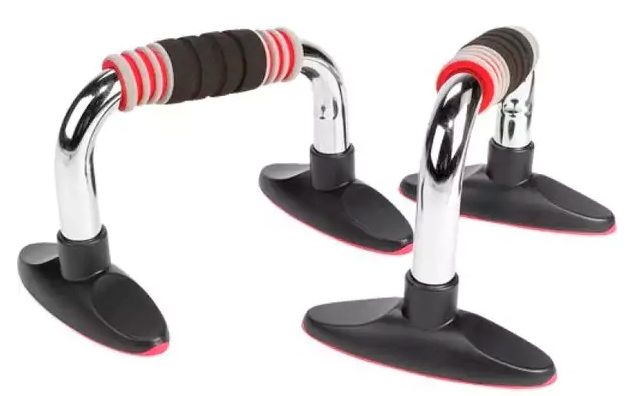 An inexpensive type of equipment makes simple exercises more effective. The model is made in the S-shape. Suitable for both beginners and experienced athletes. Manufacturing material - metal and neoprene. The handles are covered with an anti-slip layer, which makes the process of playing sports safe. A special bend allows you to carefully work out all groups of the pectoral muscles. The special shape reduces stress on the wrists. The lesson can be held in the gym or outdoors.