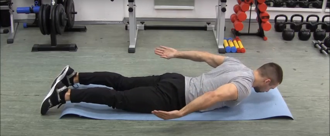 - Lie on your stomach with your forearms flat on the floor. Straighten your arms and place them behind your back. They should be parallel to the body, lift your torso.