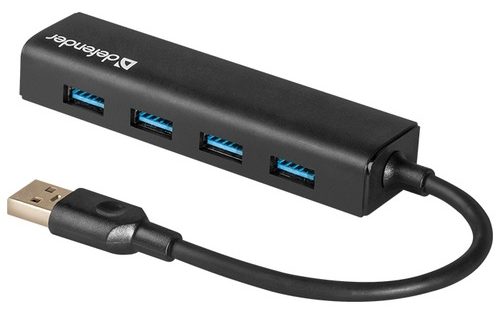 Defender Quadro Express passive splitter is made in classic black color. For the user, four USB 3.0 ports are provided, which are capable of transferring data at high speed - up to 5 Gbps. The current for each port is 900 mA.