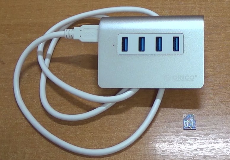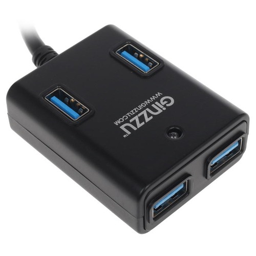 The budget hub is black. The device is very small, but at the same time it accommodates 4 USB 3.0 ports, which provide high data transfer rates (up to 5 Gb / s).