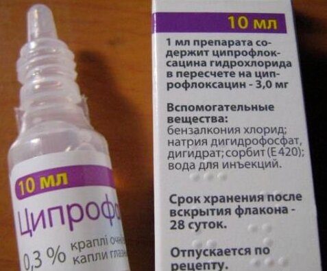 Manufactured by LLC "Grotex" (Russia). White plastic dropper bottle, clear liquid. The composition is represented by the antibiotic ciprofloxacin. Affects gram-positive (division period), gram-negative bacteria (dormant period, division). Ciprofloxacin is not effective against certain bacteria (staphylococci, pseudomones, clostridia). It is prescribed for the treatment of eye diseases (infections, eye ulcers), otitis externa, postoperative complications. Allowed for use in children (newborns). The course is 5-10 days, 3-4 drops 2-4 times a day.