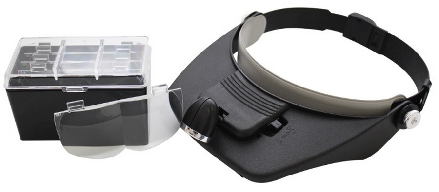 The binocular magnifier glasses are specially made for professional use. Great for working with small objects and in low light conditions (has a dual LED backlight). The set immediately comes with four sets of lenses - from 10 to 25 times. Very lightweight.