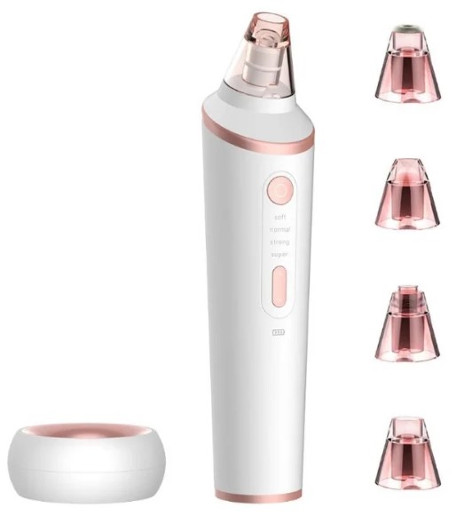 This vacuum cleaner is also from a Chinese manufacturer. The set includes 4 nozzles. Microcrystal nozzle is intended for dermabrasion, i.e. removing dead cells from the skin. A large round nozzle deeply cleanses pores, removes blackheads, and is also used for massage. The small round brush is designed for sensitive skin to help fight acne and reduce age spots. The oval nozzle smoothes fine wrinkles, makes deep wrinkles less pronounced, suitable for use in the corners of the eyes and nose. The device is suitable for both young skin and people over 40 years old. The use of all types of attachments will allow you to replace salon procedures. Very easy to use, even a beginner can easily handle it.
