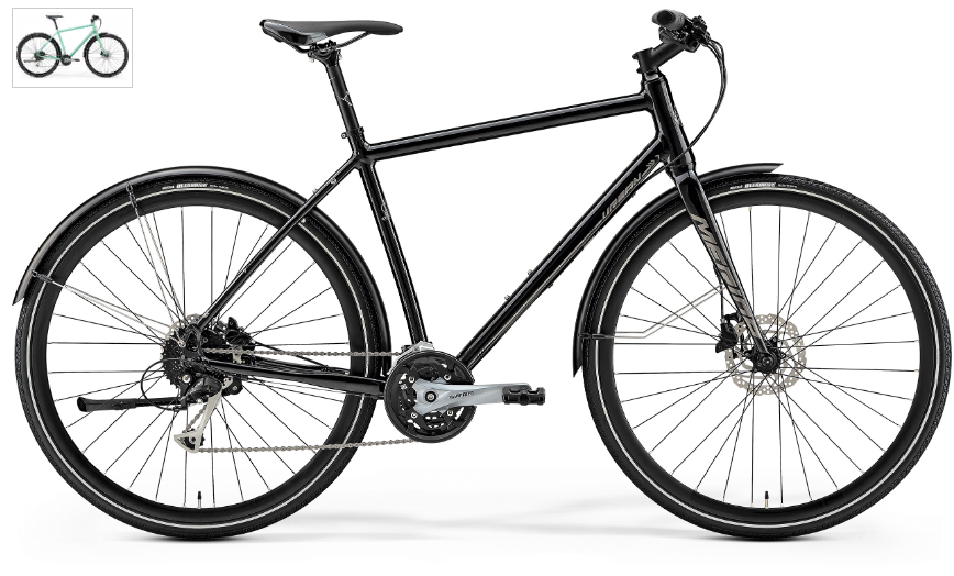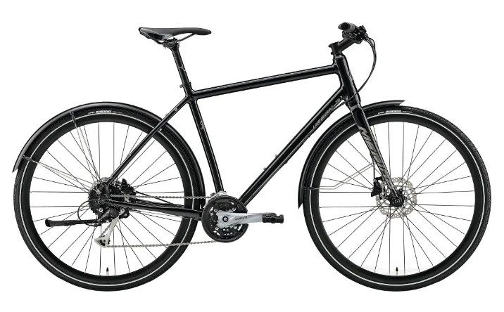 Stylish bike for urban riding (male version). Aluminum construction with rigid fork and semi-integrated threaded steering column. There are front and rear brakes, walking V-Brake type.