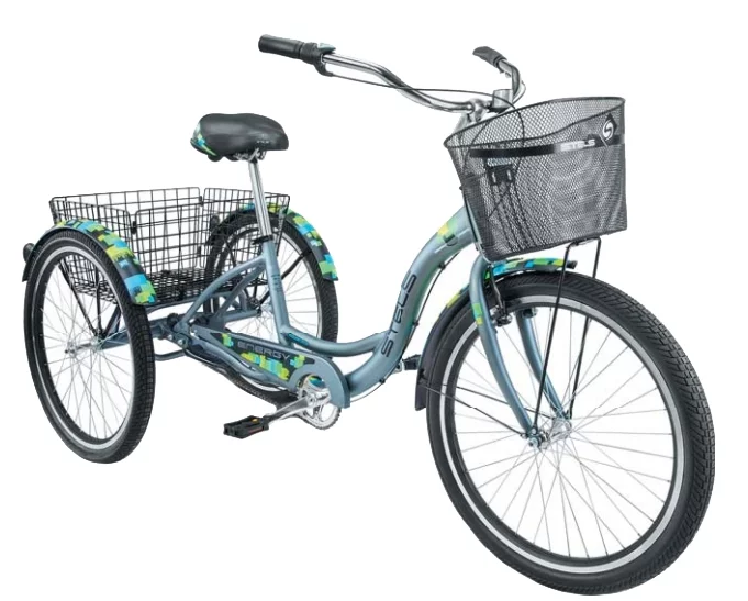 Three-wheeled model with revolving handle, luggage compartment and front basket. It is designed for city driving. The structure is made of aluminum alloy and has a metal bead cord. Ideal for transporting small loads. And the additional wheel gives the bike good stability during movement.