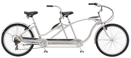 Unique model: it has an unusual design and construction in general. The presented model allows two riders to ride at the same time. Suitable for romantic walks. The design is equipped with: spring-loaded seats, adjustable in height and tilt steering elements, cup holders for drinks. There are also full fenders and chain guards to keep cyclists clean. For comfortable parking, a footrest is included.