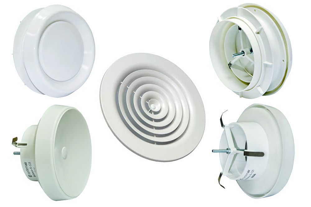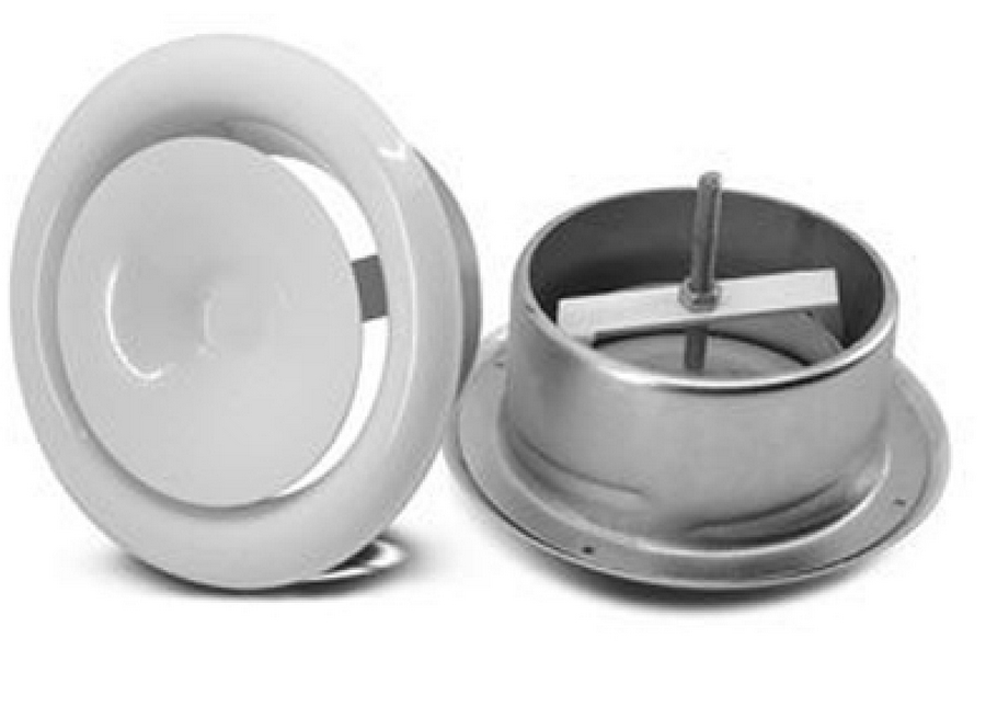 Standard and inexpensive unit for integration into extraction systems. It has proven itself to be used both for household and office premises, as well as for large retail areas. Thanks to its lightweight design, the model can be successfully integrated into extended airway systems. The volume of the extracted air is quietly regulated by the smooth rotation of the diffuser.