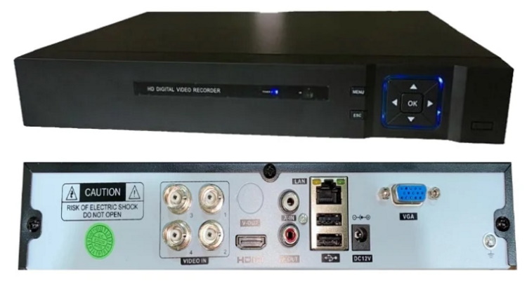 Versatile hybrid four-channel model for online monitoring, recording, playback and backup of video images. High definition HDMI and VGA video outputs. Remote control from mobile platforms and using vMEyeSuper and vMEyeCloud software. Recording is carried out in four modes: continuous, motion, schedule or event.