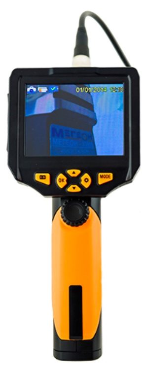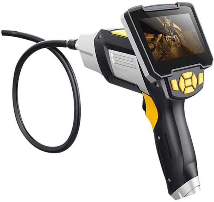 The device is suitable for the construction of pipelines, for exploring the interior space of heavy equipment, engines, etc. It is equipped with a large 3.5-inch LCD screen and is powered by four AA-batteries. Can connect to TV or computer monitor. The control panel is located directly below the screen, the purpose of all buttons is intuitive. The camera diameter is 12 mm, and the minimum focal length is 50 mm.