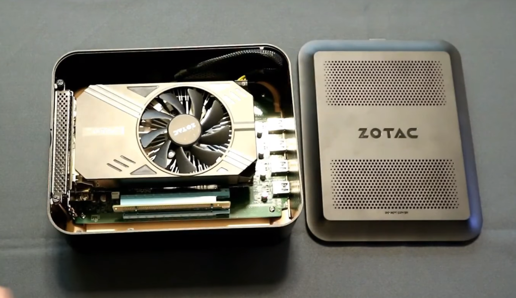 Perhaps the most affordable solution that will really show the performance gain is the Zotac AMP Box. The company is well known in the market, as the first models went on sale in 2026. By the way, AMP Box is more advanced than its predecessor mini due to its increased size. So, its dimensions are 271 x 257 x 146 mm, which allows you to install powerful video cards of the level of GeForce GTX 1080 Ti and shorter versions of other high-end models (for comparison, Mini supported work with NVIDIA GeForce GTX 1060 cards).