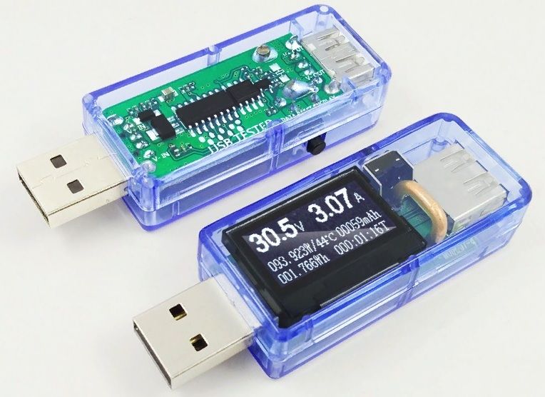 An electrical USB device in black and transparent cases, allows you to connect to any modern gadget: phone, laptop, computer, etc. The flash drive works in subzero and positive temperatures. Its small size allows you to take it with you wherever you go. The color of the numbers is white. The device measures alternating current and displays direct current at the output.