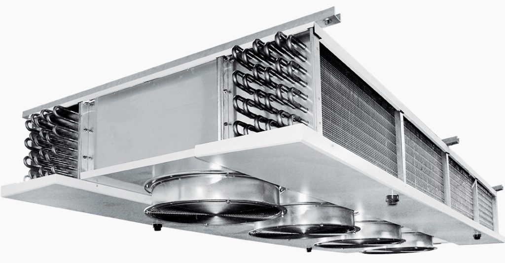 Water-type construction, which is used to cool air masses and other non-explosive gas mixtures (non-fibrous, non-sticky). Also, the composition should not include harsh abrasive substances and impurities. Installation is carried out in rectangular ducts. R407C and R22 can be used as the main substance. The recommended evaporating temperature is + 5 ° C.