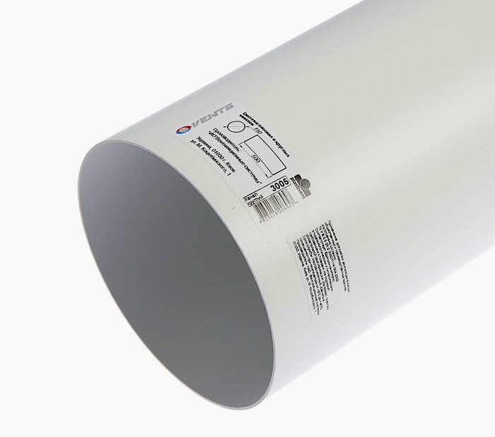 Plastic elements with a round cross-section, which are used for arranging ventilation systems in medium and small-sized rooms. Also, using the Vents 3005 model, you can connect the hood in the kitchen. For the connection, you will need auxiliary elements with a diameter of 100-200 mm. The manufacturer uses white PVC as the main material. It has a length of 0.5 m. The diameter of the outer part is 153 mm. Inner diameter - 150 mm.